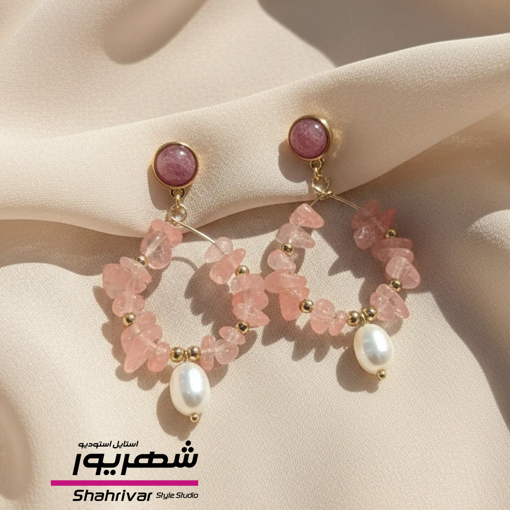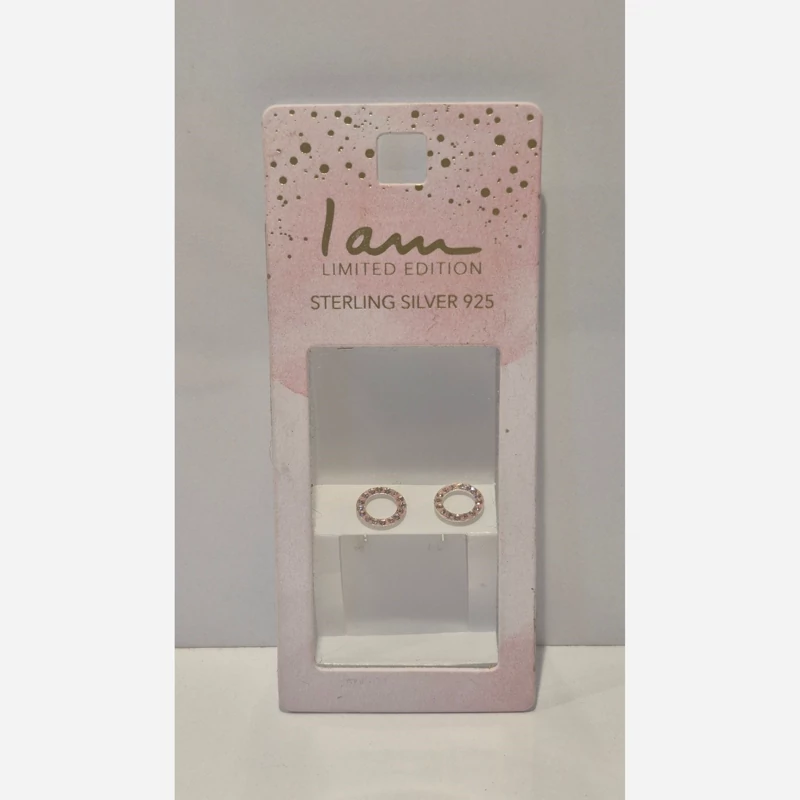 ناموجودگوشواره زنانه نقره برند I Am با نگین های صورتی