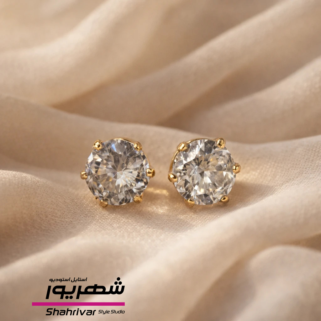 گوشواره زنانه میخی جواهری الماسی برند I Am