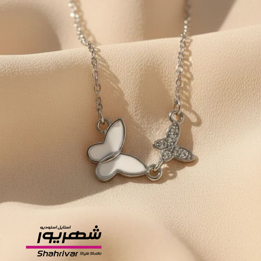 گردنبند نقره ای زنانه ظریف پروانه صدفی جواهری