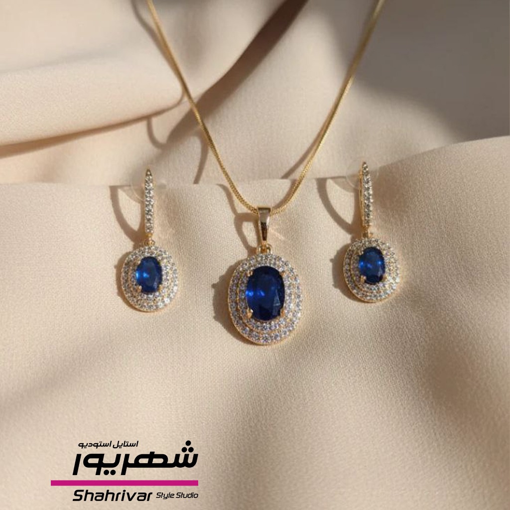 ناموجودنیم ست زنانه جواهری یاقوت کبود ژوپینگ