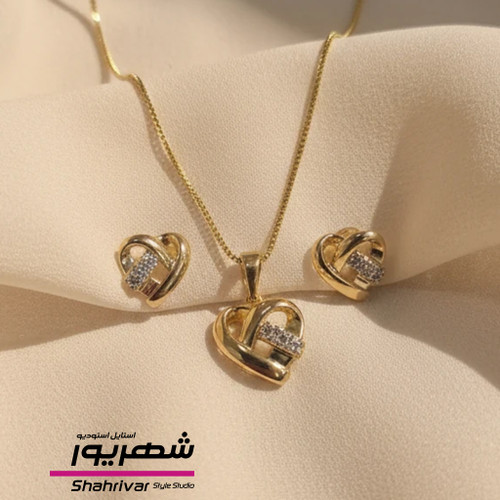 ناموجودنیم ست زنانه طلایی جواهری زنانه قلب ژوپینگ