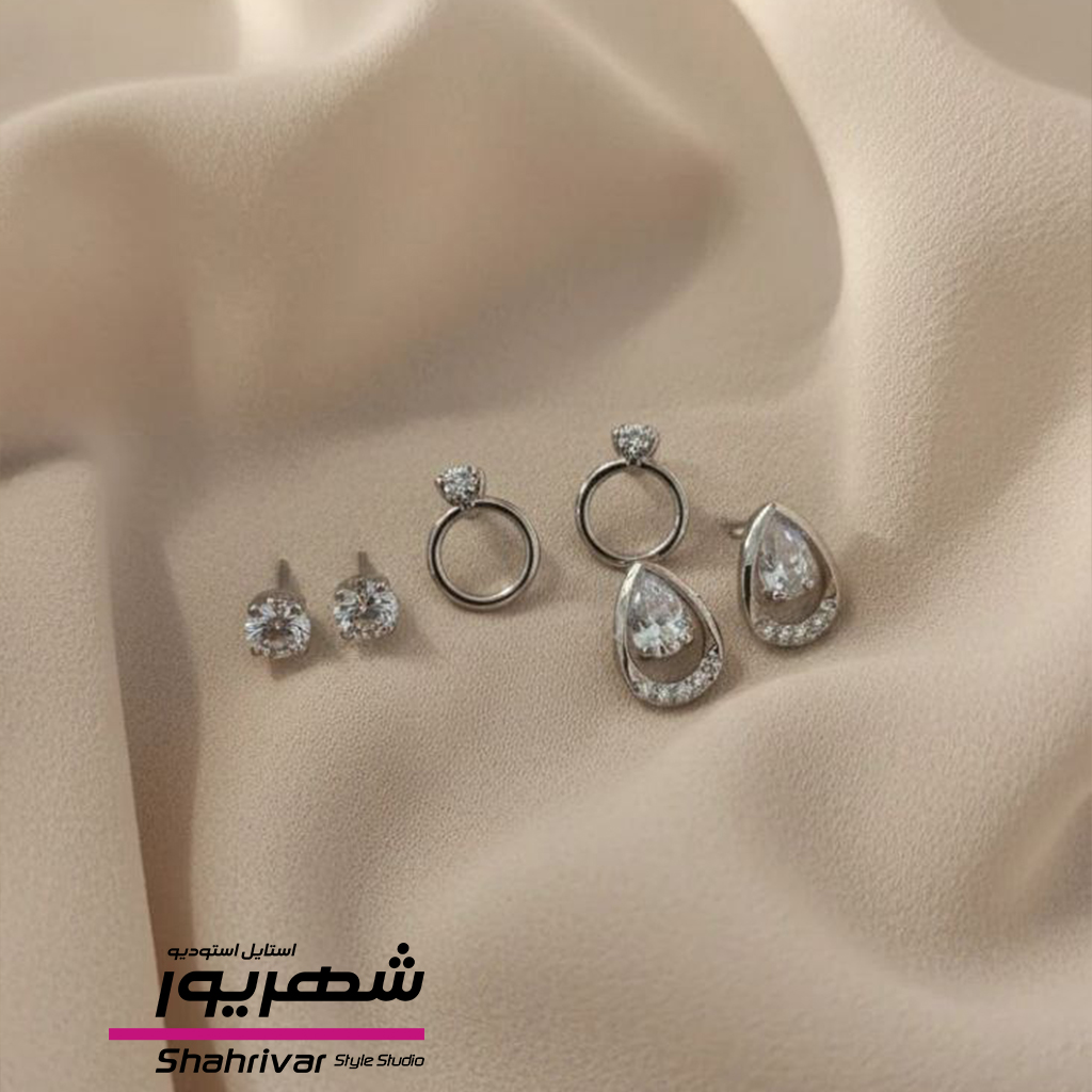 نیم ست زنانه سیلور ژوپینگ بیضی کلاسیک نگین دار