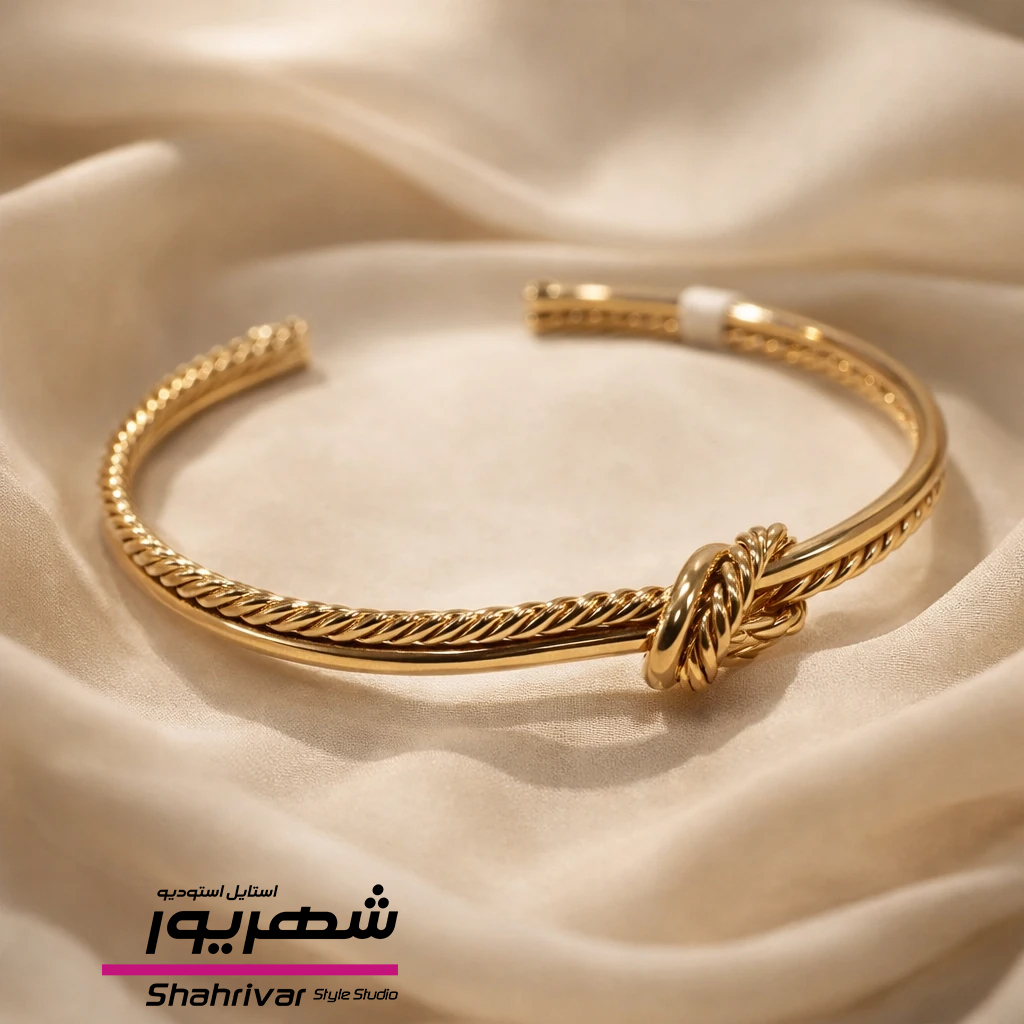 ناموجودبنگل زنانه النگو جواهری گره ژوپینگ طلایی