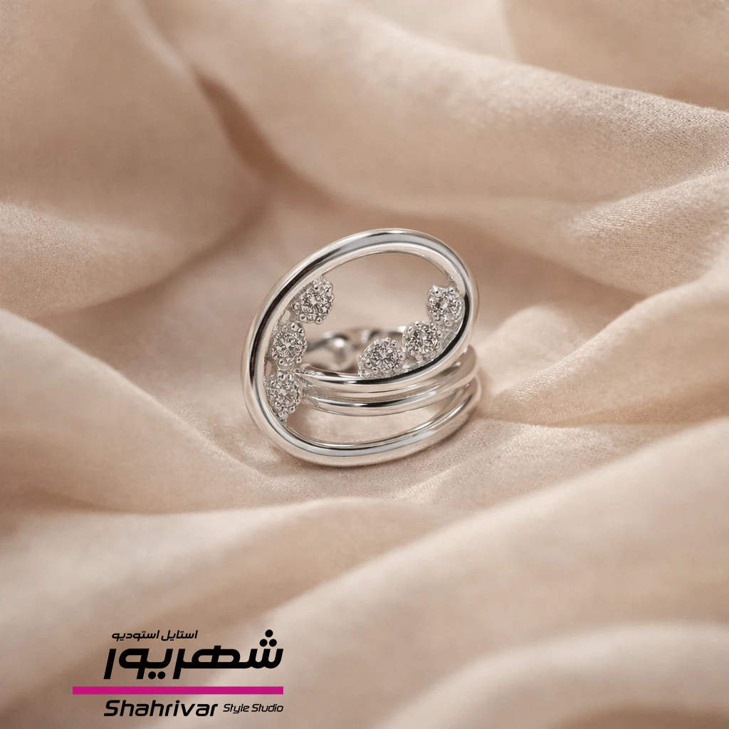 انگشتر نقره ای دایره خطی تراش خورده زنانه