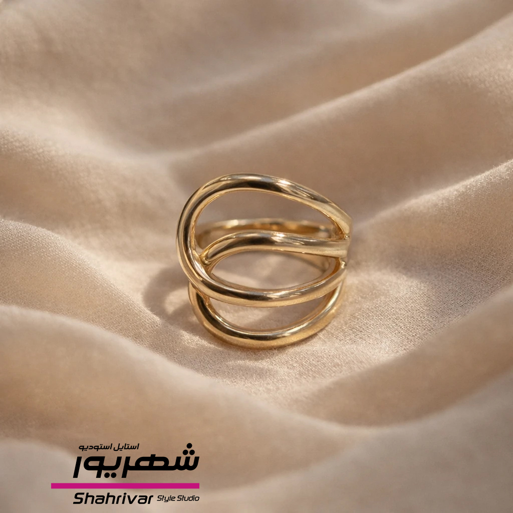 انگشتر ژوپینگ زنانه طلایی جواهری سه خط