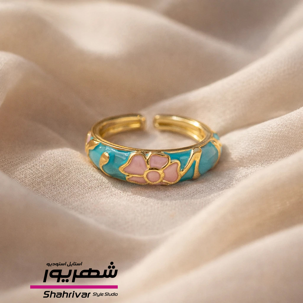 ناموجودانگشتر آبی پاستلی فیروزه ای صورتی گل ریز زنانه میناکاری فری سایز