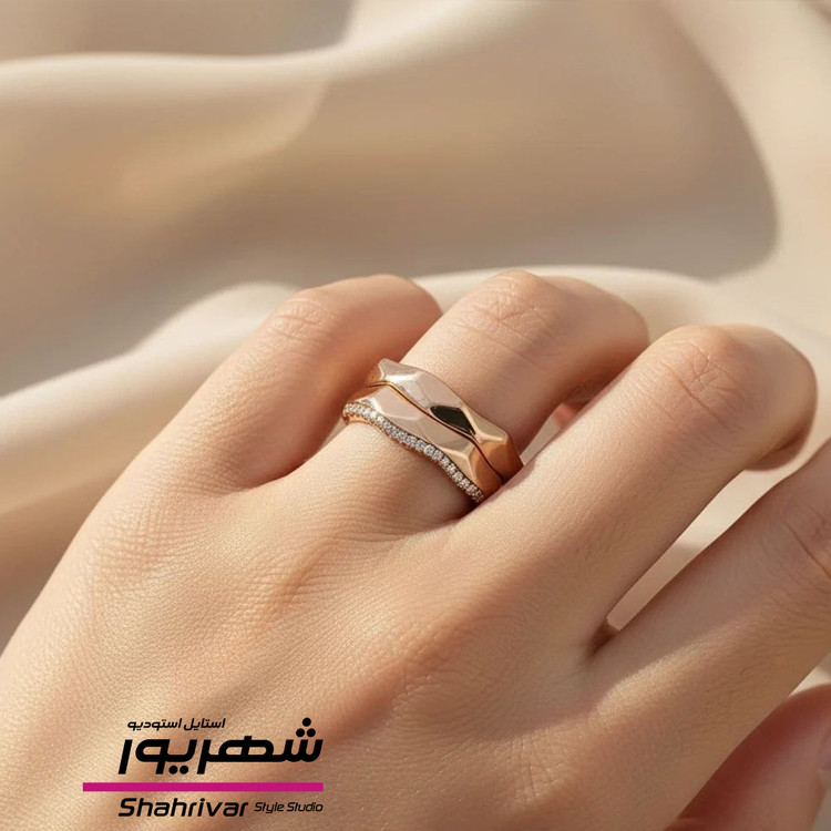 انگشتر زنانه حلقه پشت حلقه چند ضلعی جواهری ژوپینگ