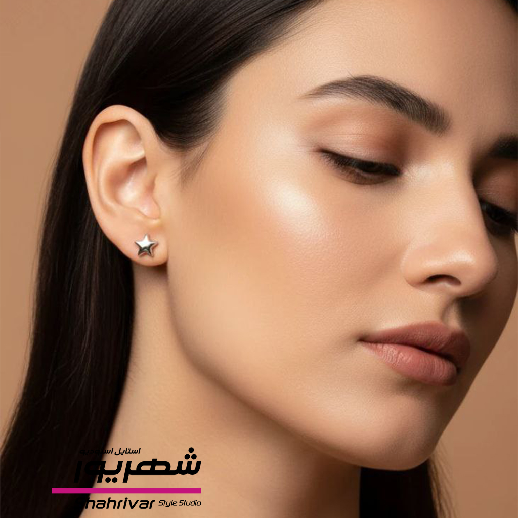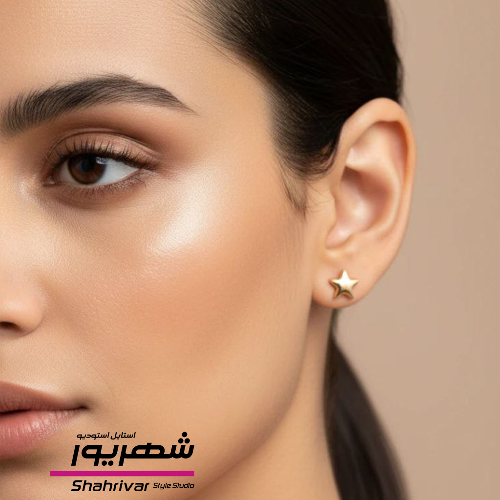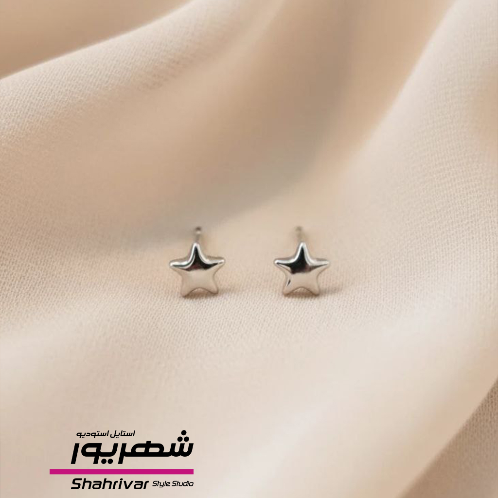 گوشواره زنانه میخی ستاره طلایی و نقره ای ژوپینگ