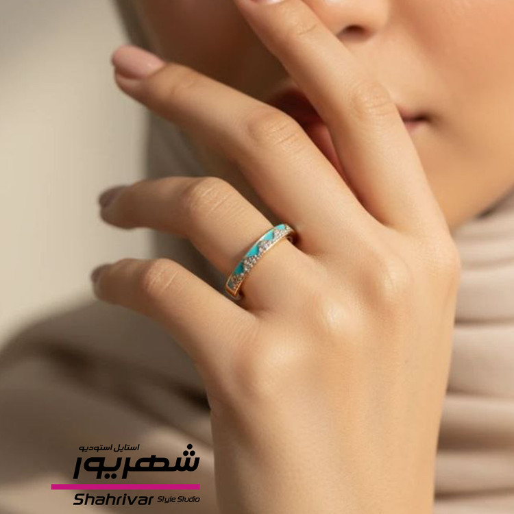 انگشتر میناکاری فیروزه ای جواهری ژوپینگ زنانه