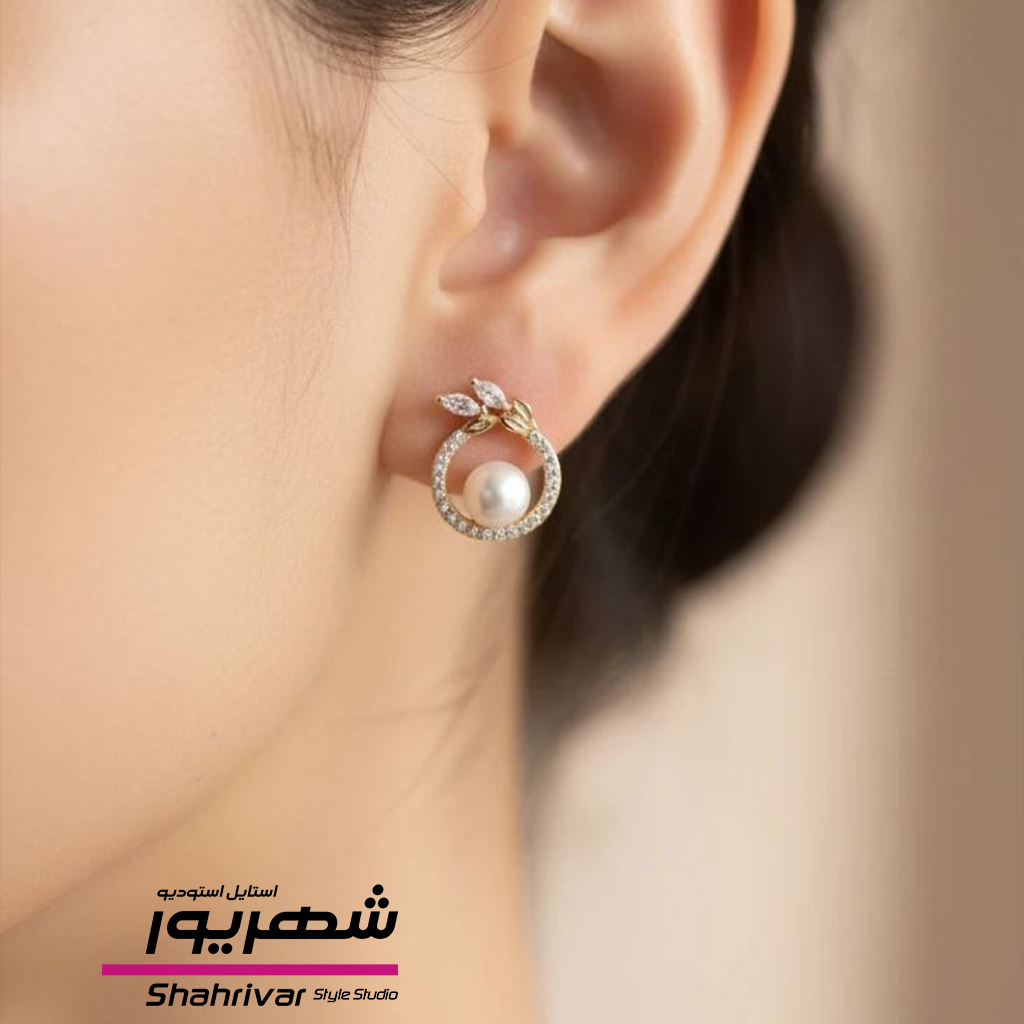گوشواره طلایی جواهری مروارید برگ زنانه ژوپینگ