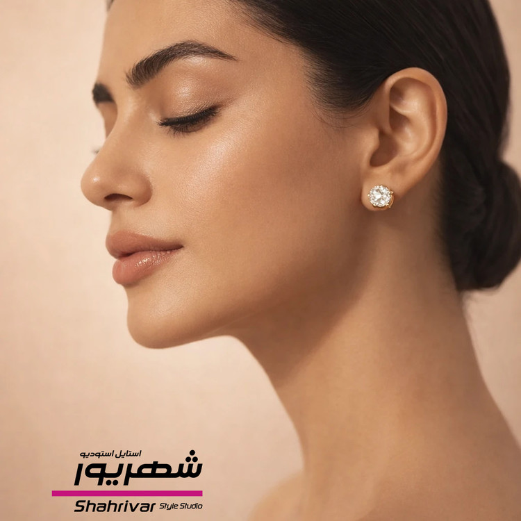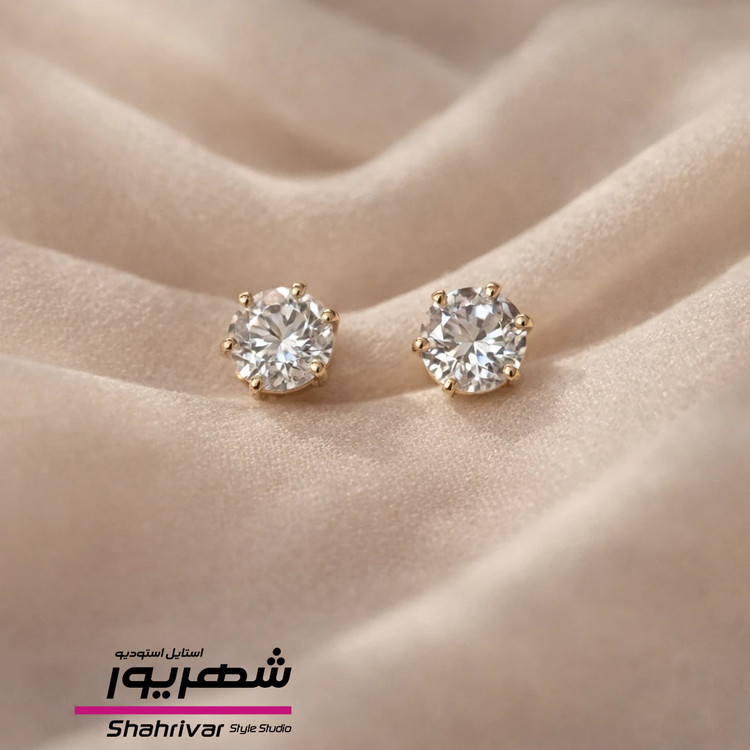 گوشواره زنانه میخی جواهری الماسی برند I Am