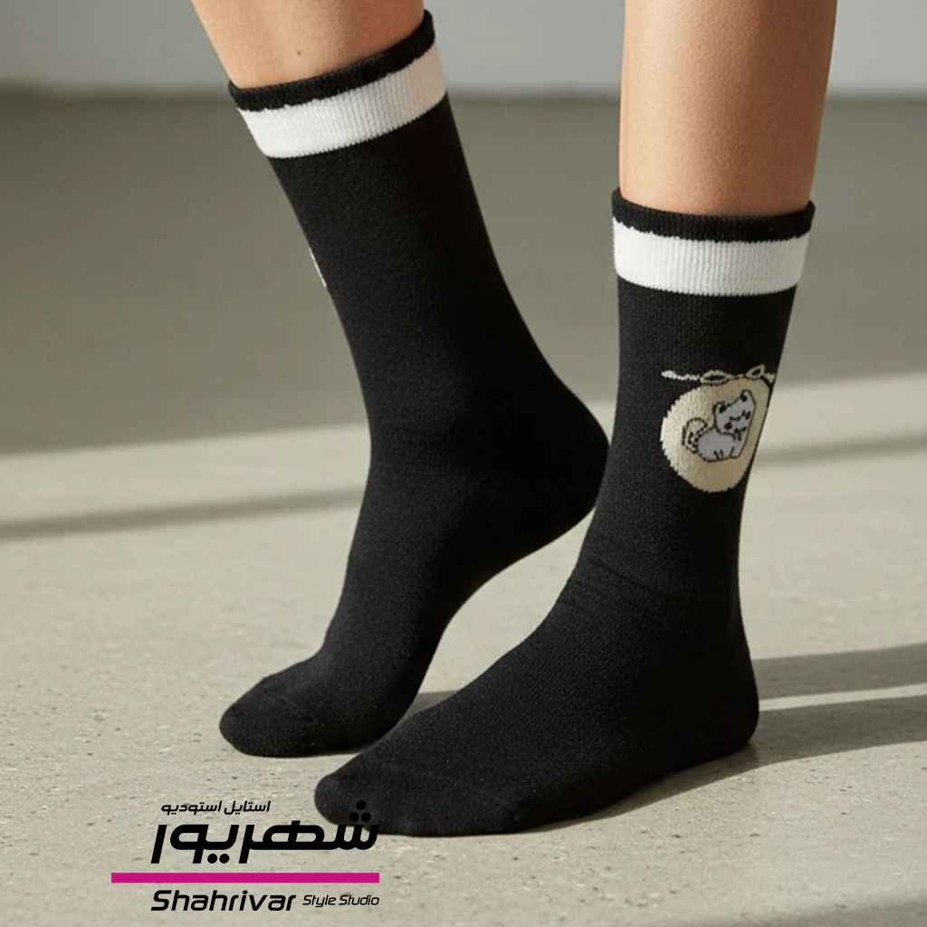 جوراب فانتزی زنانه مشکی گربه