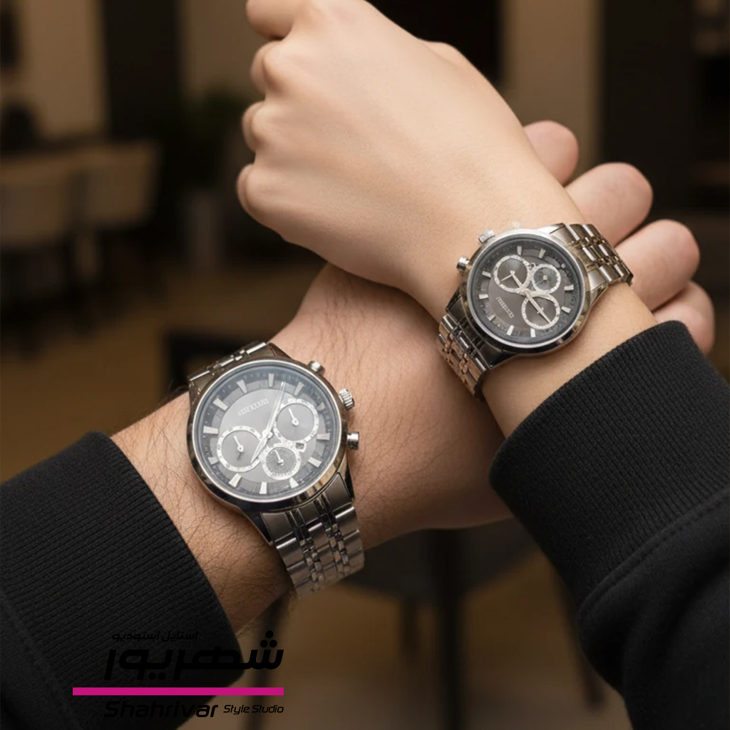 دستهبندی: ساعت ستابعاد: 3.5 سانتی متر زنانه و 4.5 سانتی متر مردانهرنگ: نقره ای و مشکینحوه بسته شدن: قفل پروانه ای دکمه دارجنس: استیل