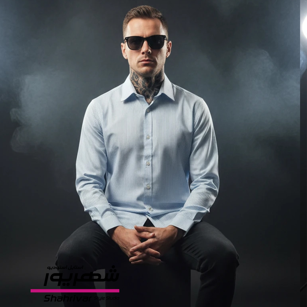 پیراهن آبی راه راه سفید مردانه و زنانه