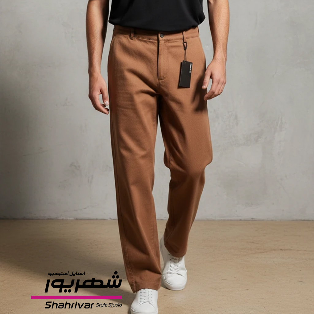 شلوار قهوه ای آجری کتان بگ مردانه