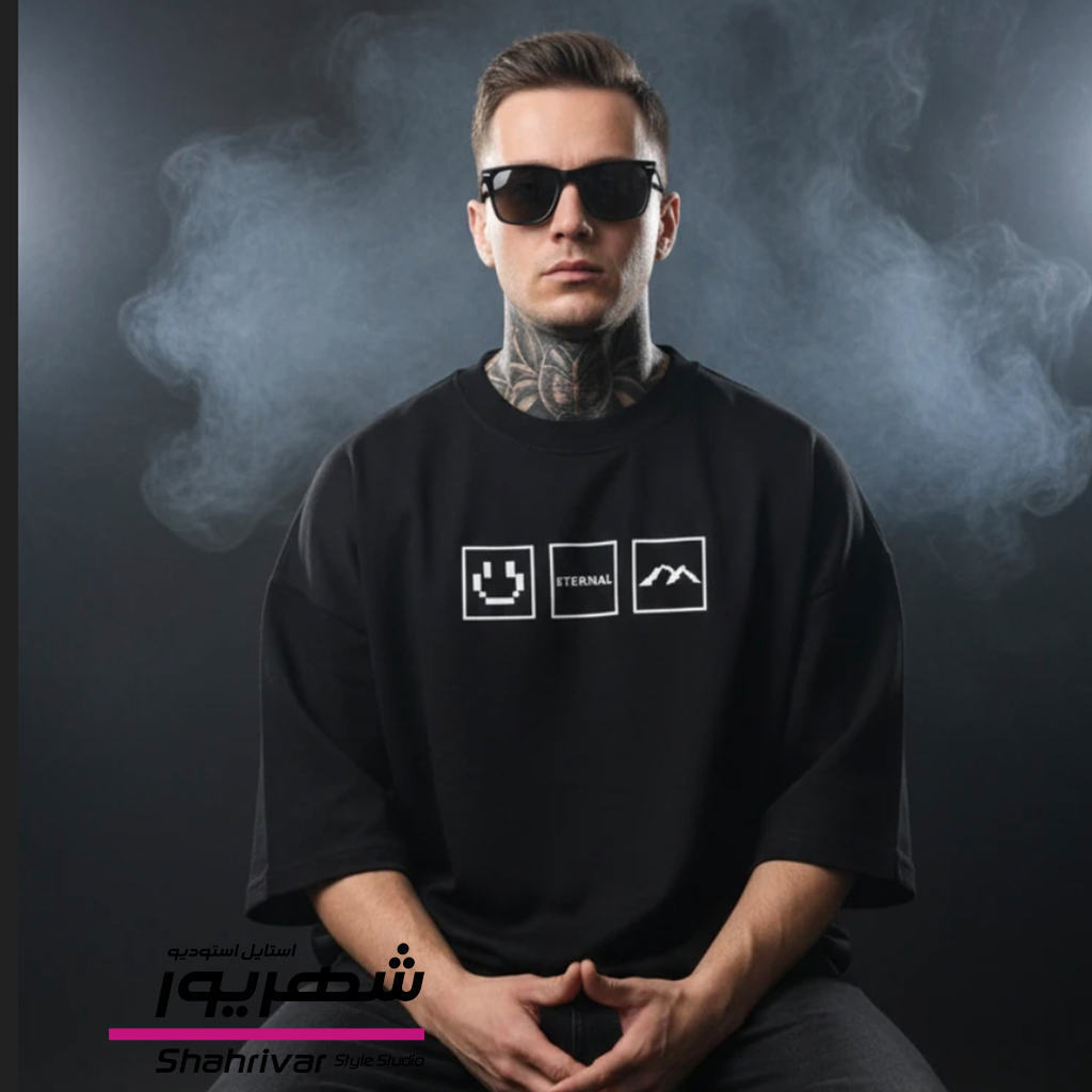 تیشرت باکسی مشکی طرحدار زنانه و مردانه