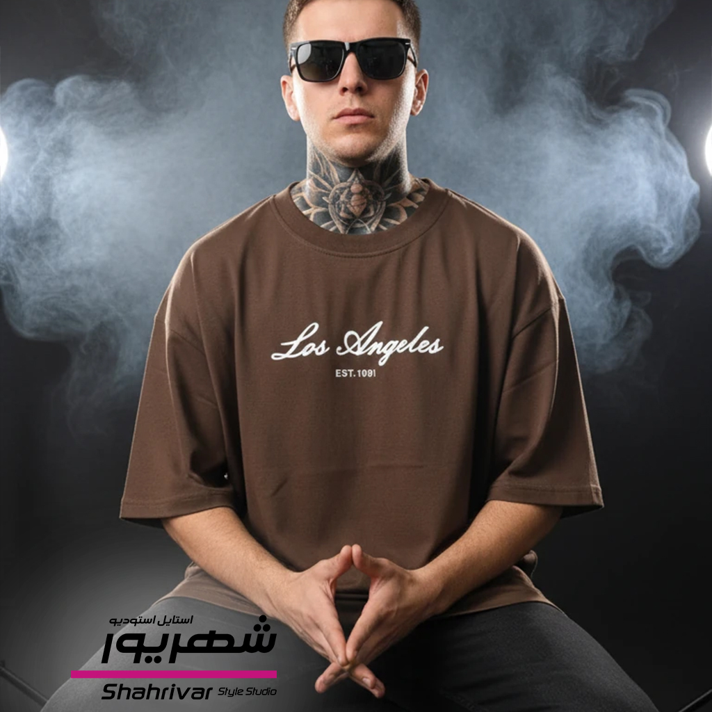 تیشرت باکسی قهوه ای طرحدار زنانه و مردانه Los Angles