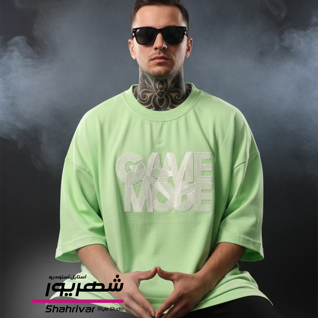 تیشرت باکسی سبز پاستلی مغز پسته ای طرحدار زنانه و مردانه