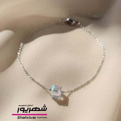 دستبندنقره ای زنانه ظریف مکعب هفت رنگ هولوگرامی