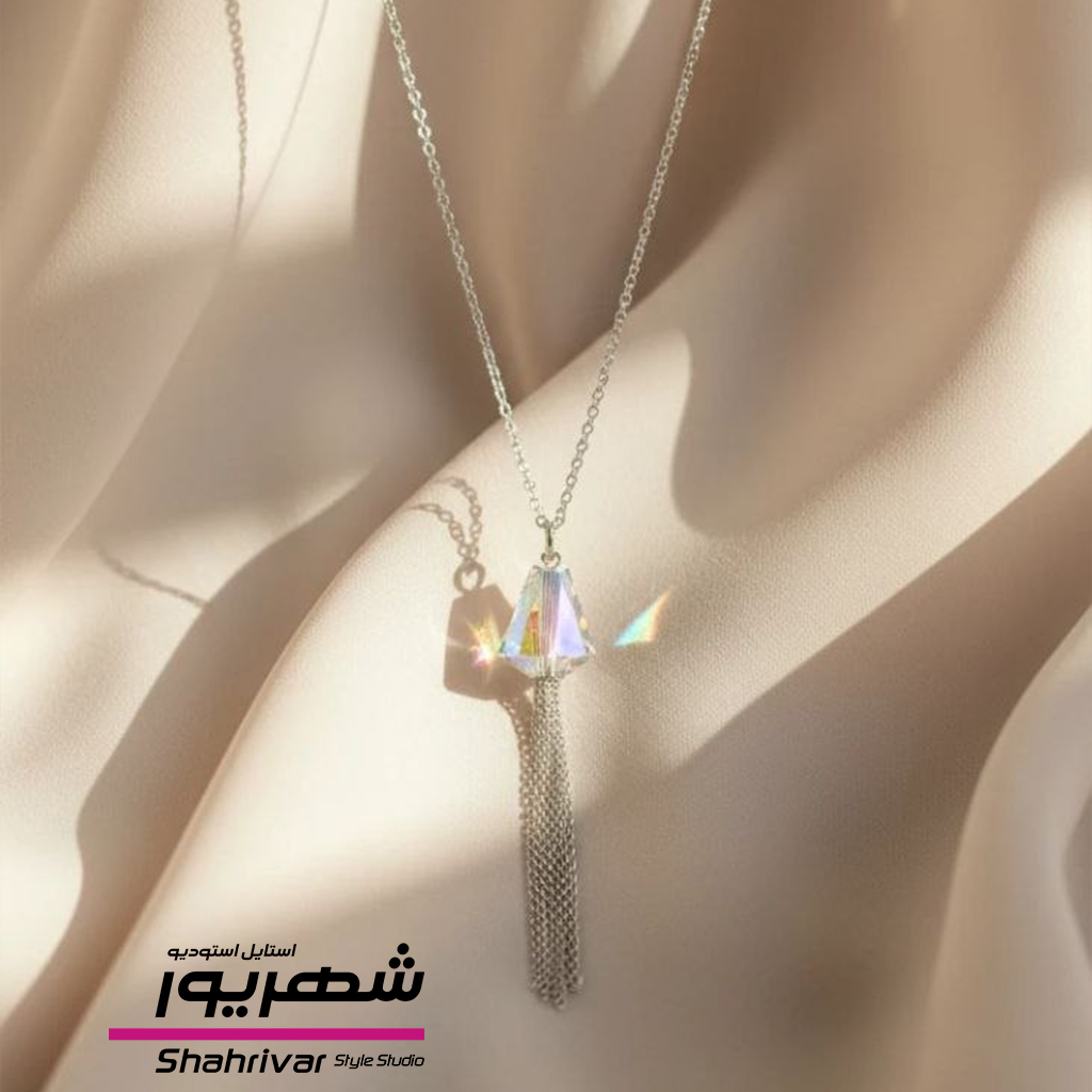گردنبندنقره ای هولوگرام هفت رنگ زنانه آویز دار