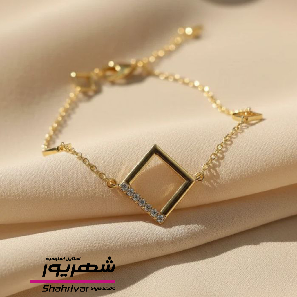 دستبند طلایی زنانه ظریف مربع