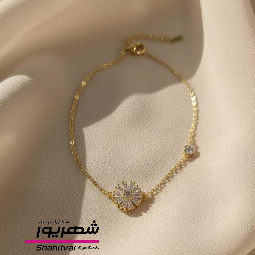 دستبند طلایی زنانه ظریف گل جواهری