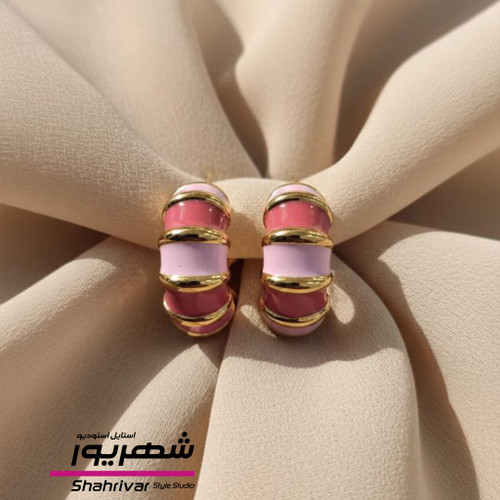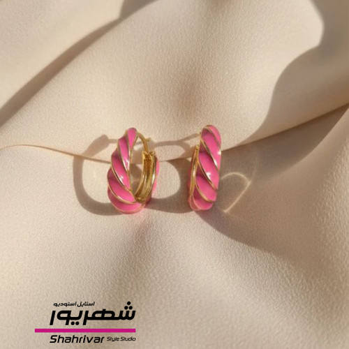 گوشواره حلقه صورتی طلایی زنانه میناکاری ژوپینگ