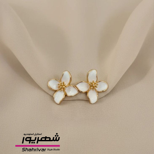 ناموجودگوشواره زنانه میخی گل یاس میناکاری سفید ژوپینگ
