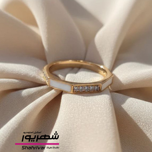 انگشتر چند ضلعی میناکاری سفید جواهری ژوپینگ زنانه