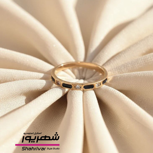 انگشتر ژوپینگ جواهری زنانه ظریف میناکاری مشکی