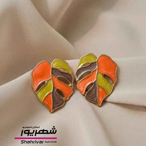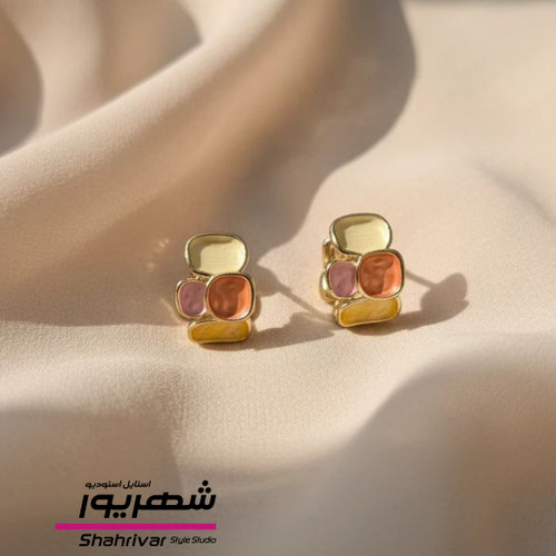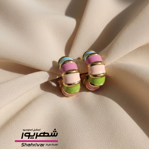 گوشواره حلقه سبز صورتی نارنجی طلایی زنانه میناکاری ژوپینگ