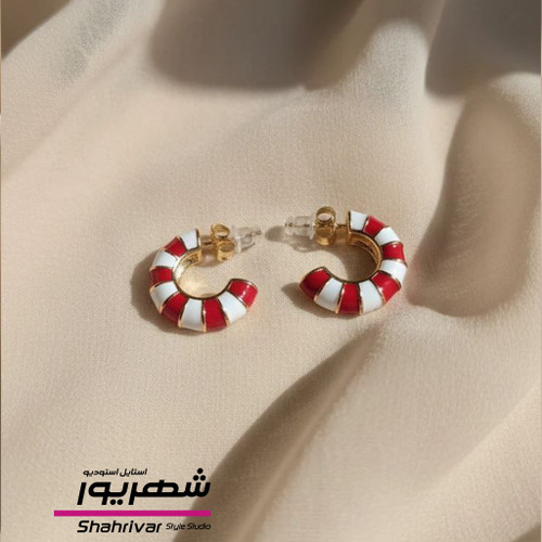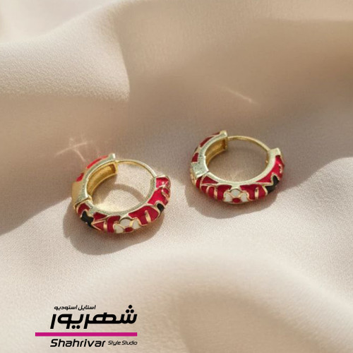 گوشواره قرمز سفید حلقه طلایی زنانه میناکاری ژوپینگ