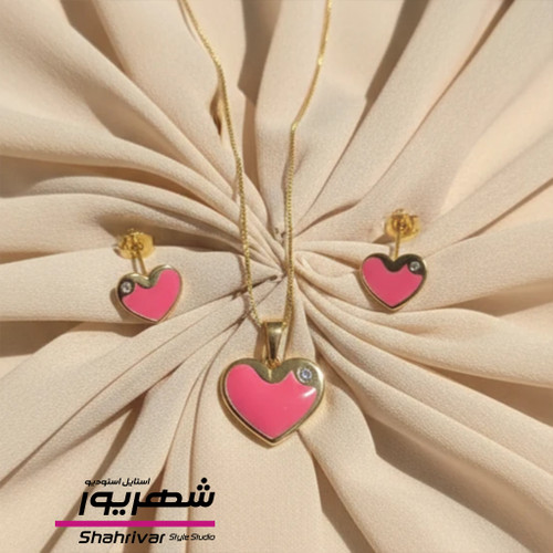 نیم ست زنانه قلب صورتی میناکاری ژوپینگ