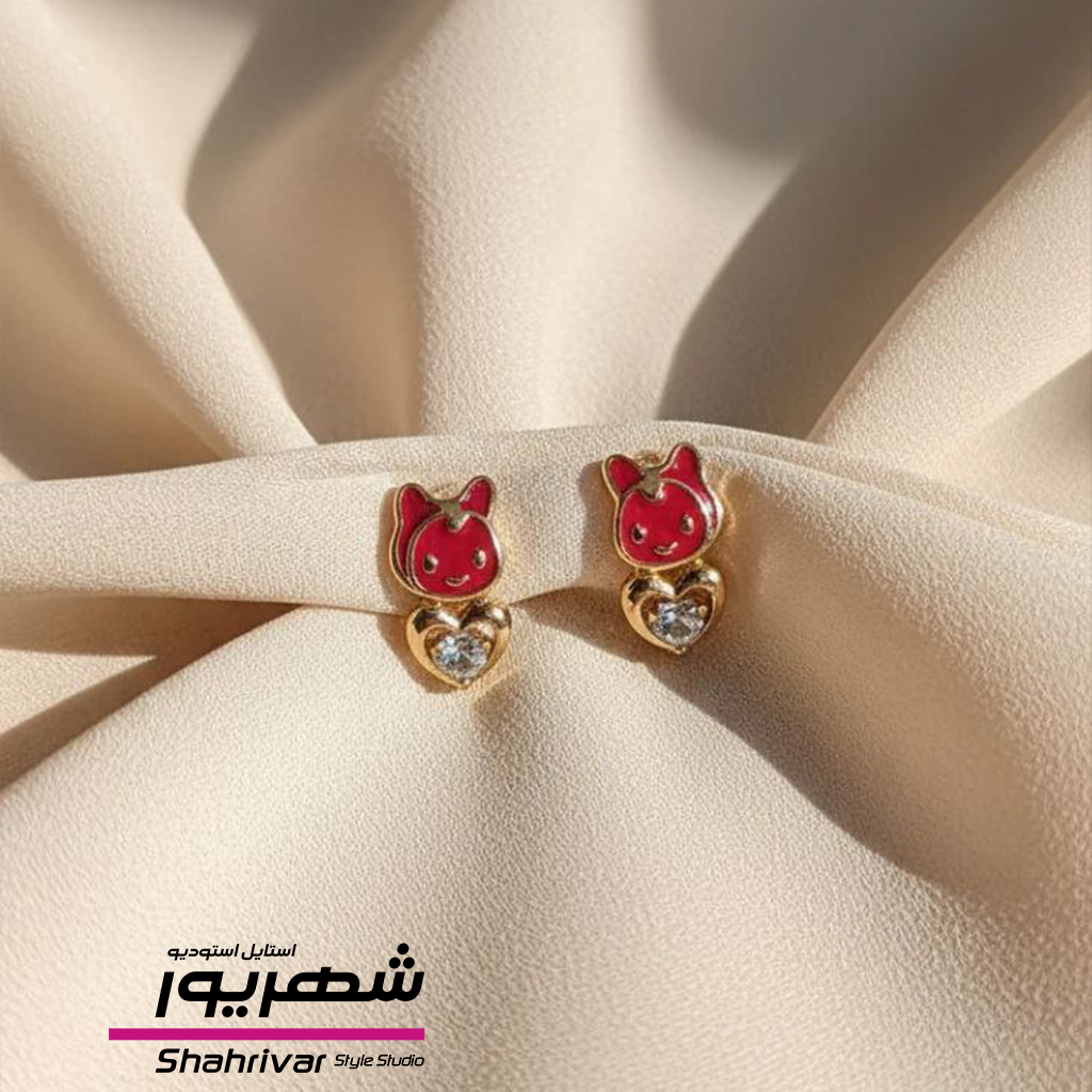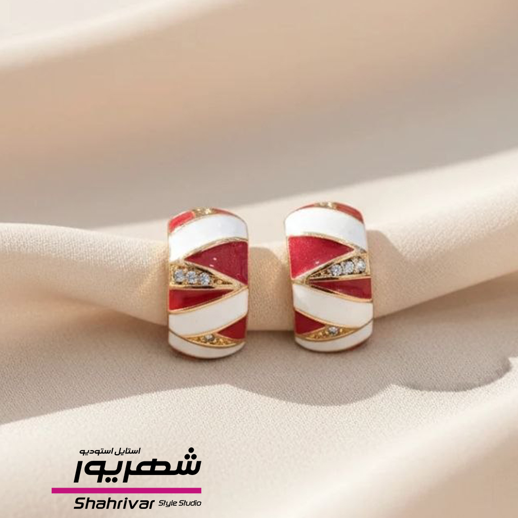 گوشواره زنانه میخی میناکاری سفید قرمز نگین دار ژوپینگ