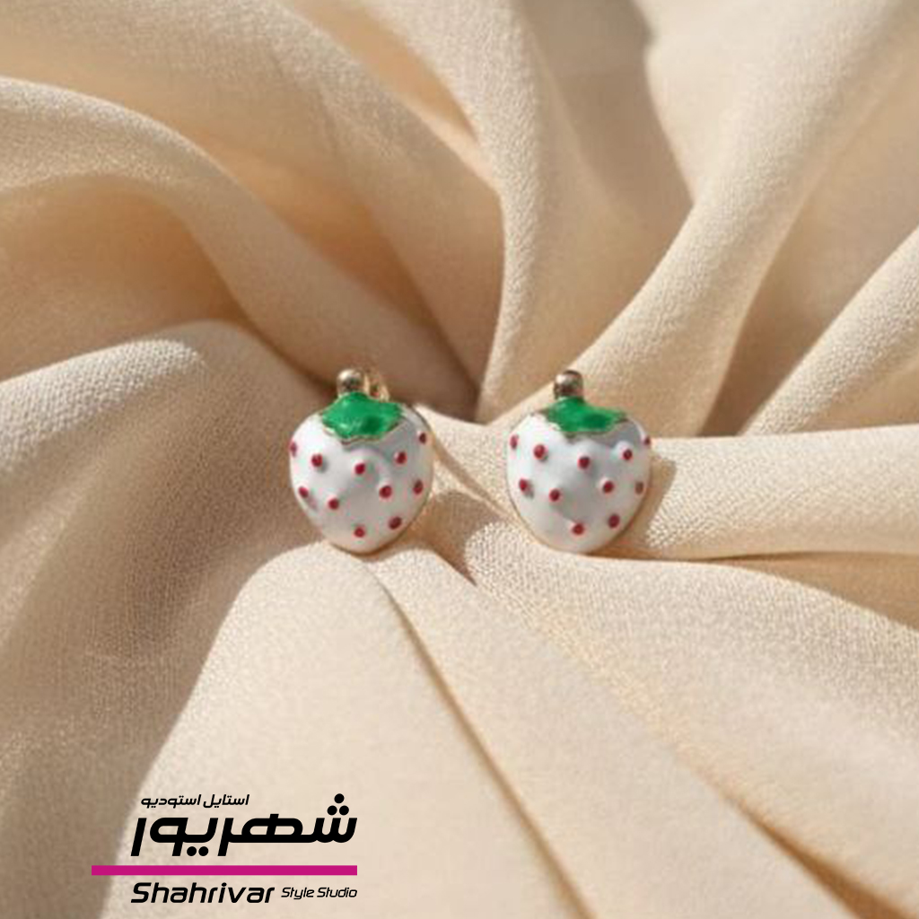 گوشواره زنانه میخی توت فرنگی میناکاری سفید ژوپینگ