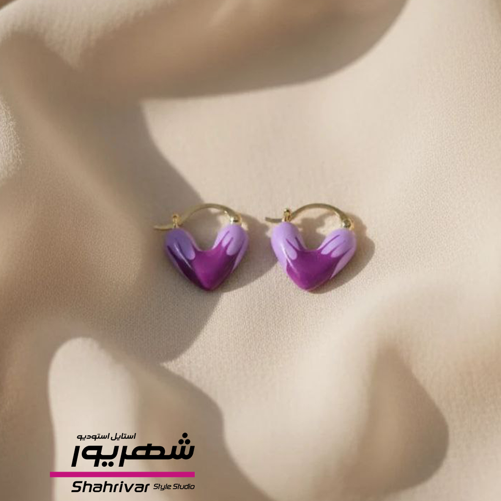 گوشواره قلب حلقه طلایی زنانه میناکاری