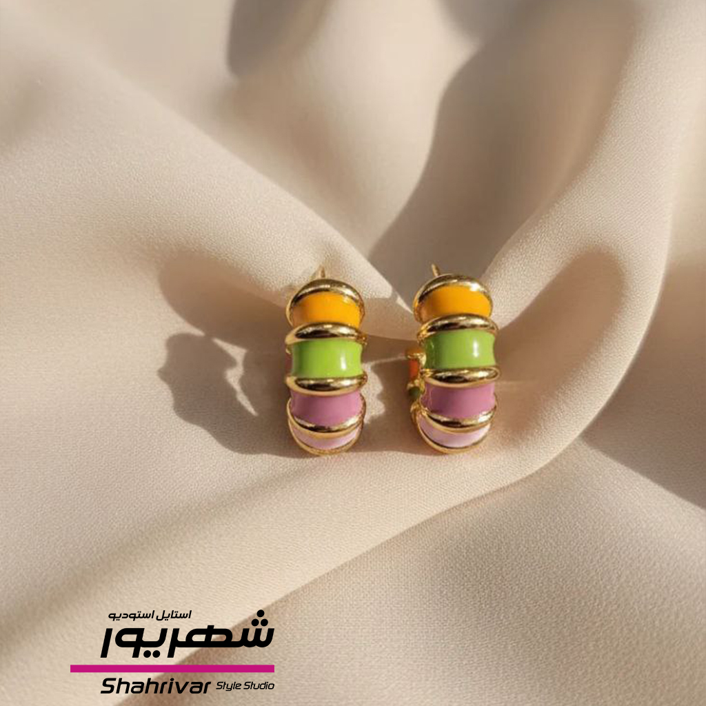 گوشواره حلقه سبز صورتی نارنجی طلایی زنانه میناکاری ژوپینگ