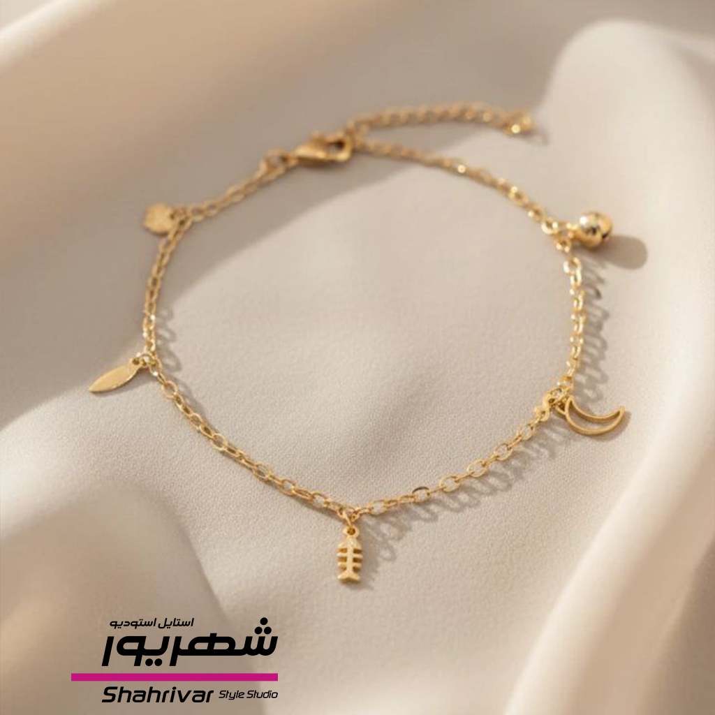 پابند زنانه فانتزی ژوپینگ طلایی با آویز تیغ ماهی و ماه