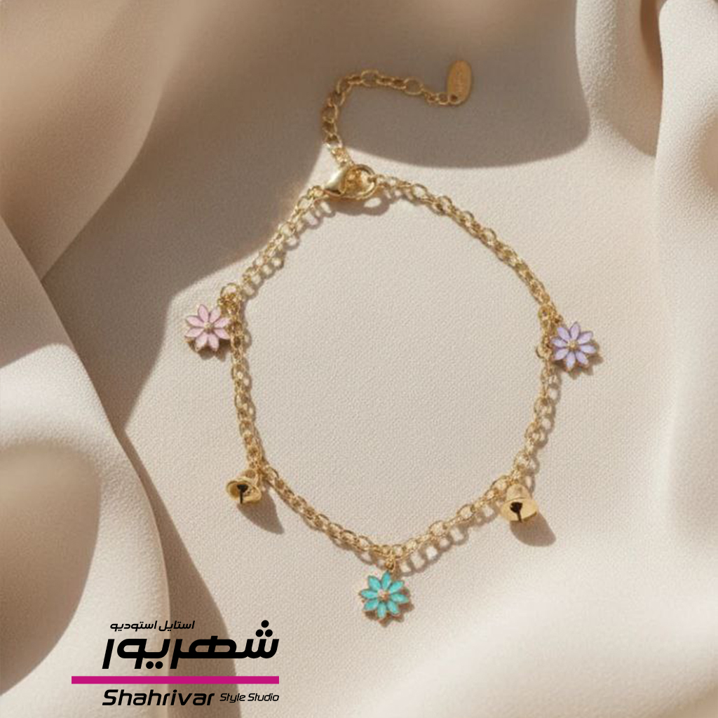 پابند زنانه فانتزی میناکاری ژوپینگ طرح گل و زنگوله