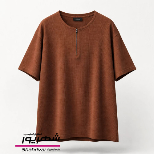 تیشرت قهوه ای نیم زیپ مردانه و زنانه