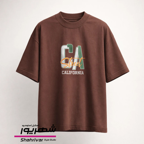 تیشرت باکسی قهوه ای طرحدار زنانه و مردانه Los Angles