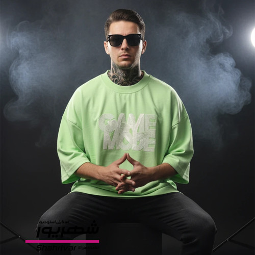 تیشرت باکسی سبز پاستلی مغز پسته ای طرحدار زنانه و مردانه