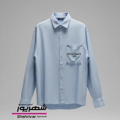 پیراهن مردانه آبی روشن جیب دار
