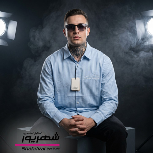 پیراهن آبی راه راه سفید مردانه و زنانه